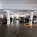 No térreo, uma garagem fechada "escriturada", para 2 veículos, no mezanino 2 vagas livres paralelas.