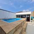 No piso superior, área com churrasqueira, amplo salão para TV ou jogos, uma deliciosa piscina para curtir momentos inesquecíveis.