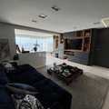 • Sala de TV: Sofá de cinco lugares, mesa de centro, home theater completo com subwoofer de 10 polegadas JBL e receiver Denon, TV de 65 polegadas